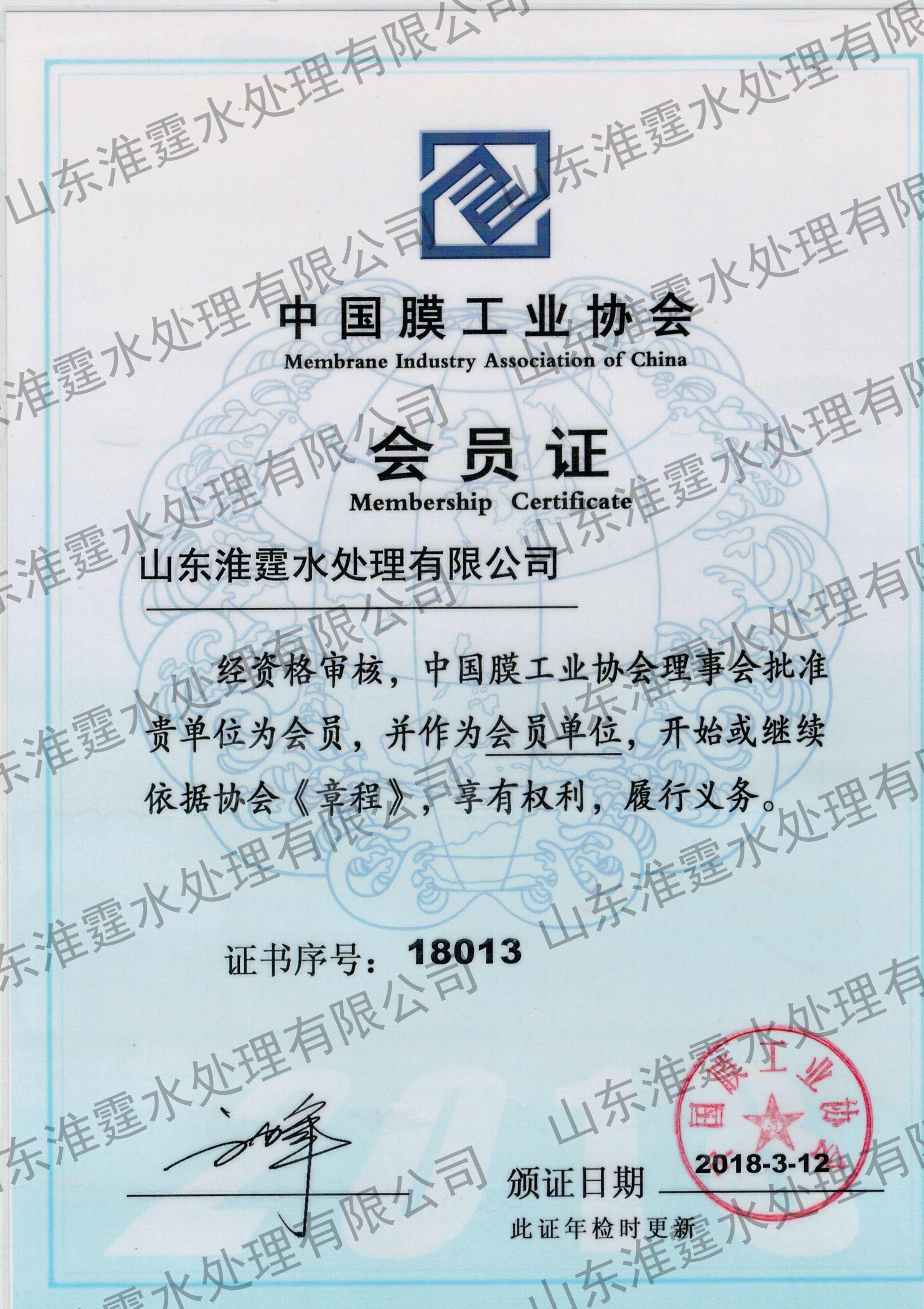 中国工业膜协会会员 - 荣誉资质 - 反渗透膜阻垢剂_缓蚀阻垢剂_杀菌灭藻剂_粘泥剥离剂_山东PA旗舰厅水处理有限公司